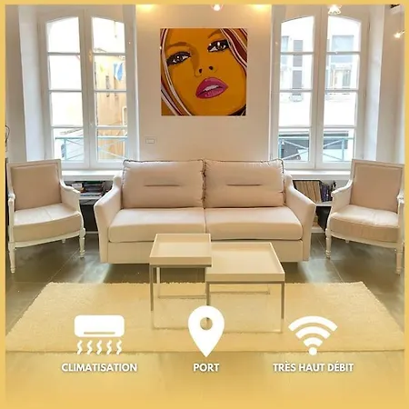 1-slaapkamer Superbe Appartement Saint-Tropez - Port ligt slechts 500 meter van de Haven van Saint Tropez. Het appartement is gelegen ook op korte loopafstand van Musée de la gendarmerie et du cinéma de Saint-Tropez en biedt schoonmaakfaciliteiten voor gasten, waaronder een wasmachine.